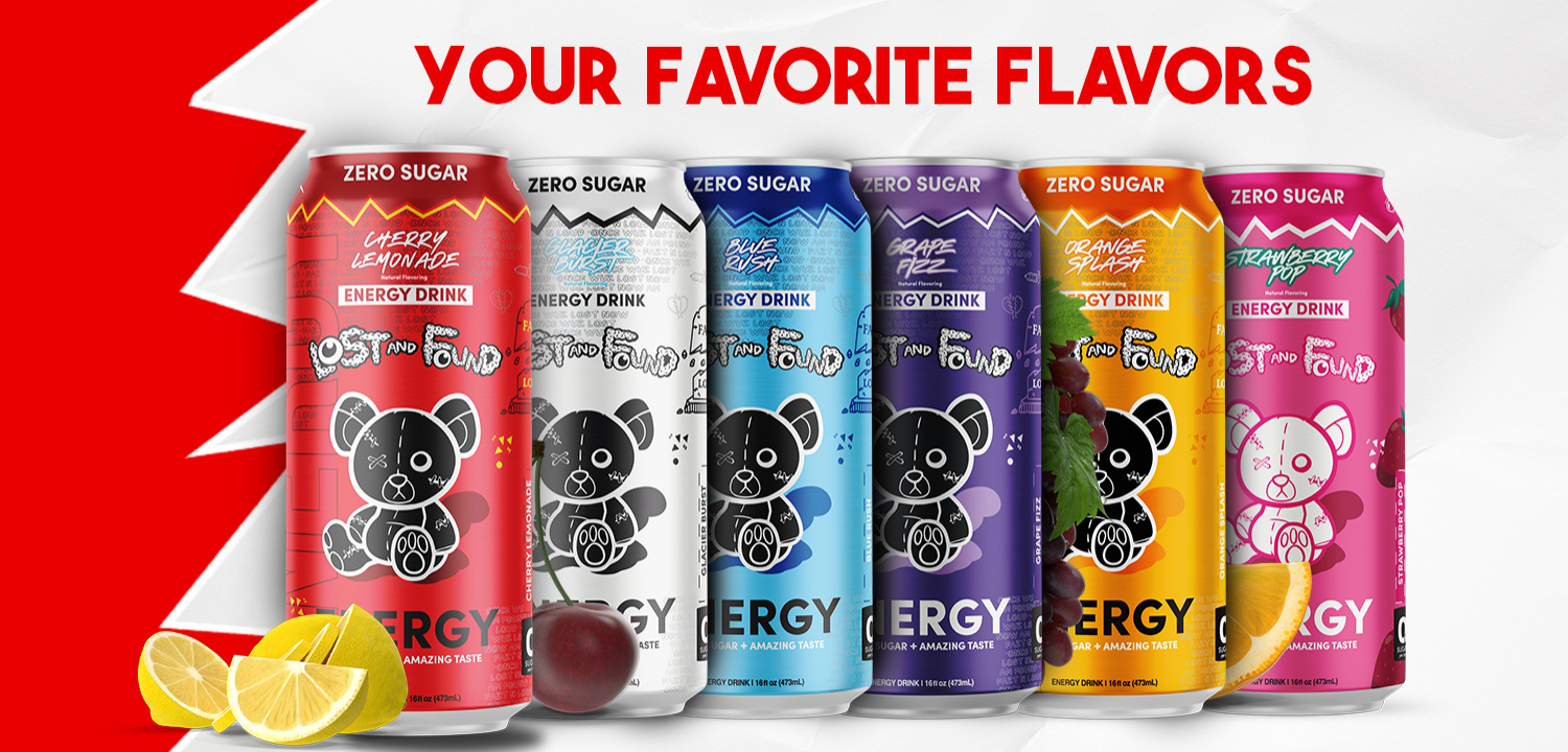 All Lost & Found energy drinks contain 10 calories, 0g sugar, and 150mg caffeine.
